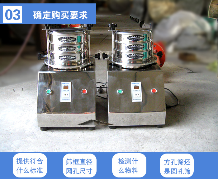 實(shí)驗(yàn)室質(zhì)檢:是要求外表精致美觀實(shí)用,網(wǎng)孔標(biāo)準(zhǔn),經(jīng)過專業(yè)檢測(cè)儀器檢驗(yàn)過的,符合標(biāo)準(zhǔn)GBT6003-1997或標(biāo)準(zhǔn)ISO3310-1:1990的標(biāo)準(zhǔn)篩。